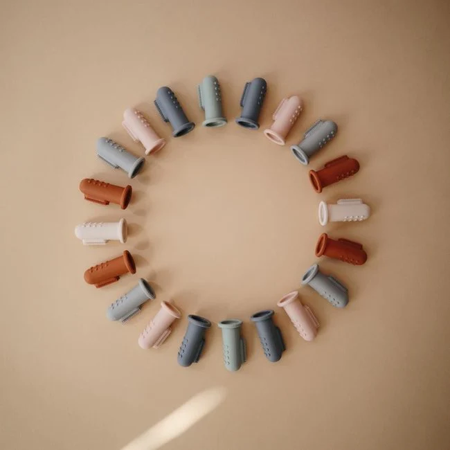 Les premières dents de votre bébé poussent ? Alors commencez le brossage avec la brosse à dents pour bébé de Mushie.