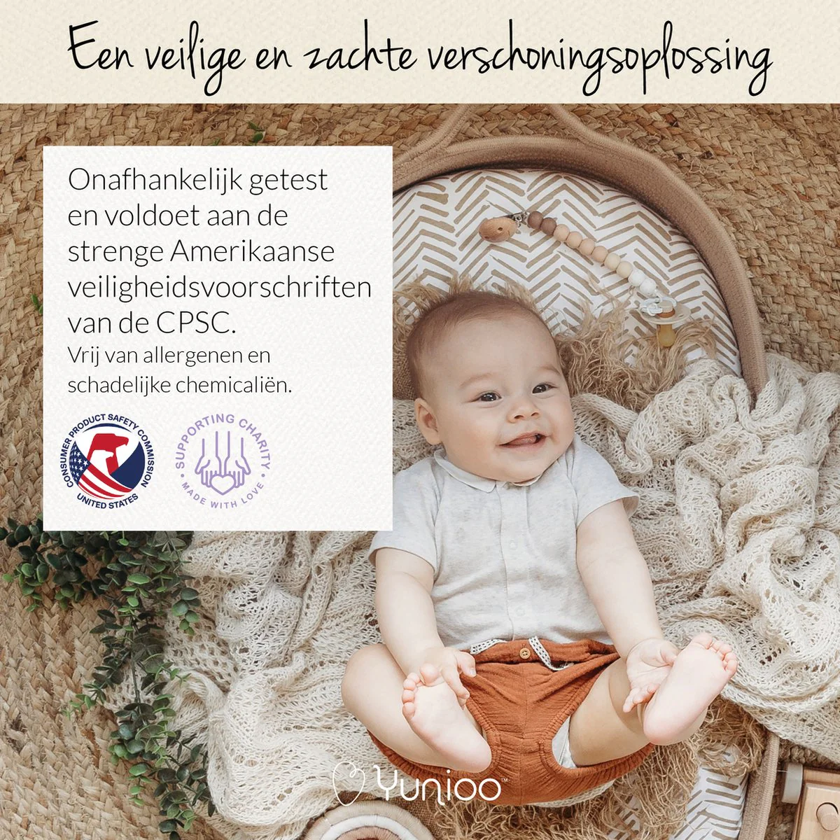Le panier à langer Yunioo XL allie style, confort et fonctionnalité. Ce matelas à langer souple et flexible est idéal pour changer votre bébé et reste polyvalent même après sa naissance.